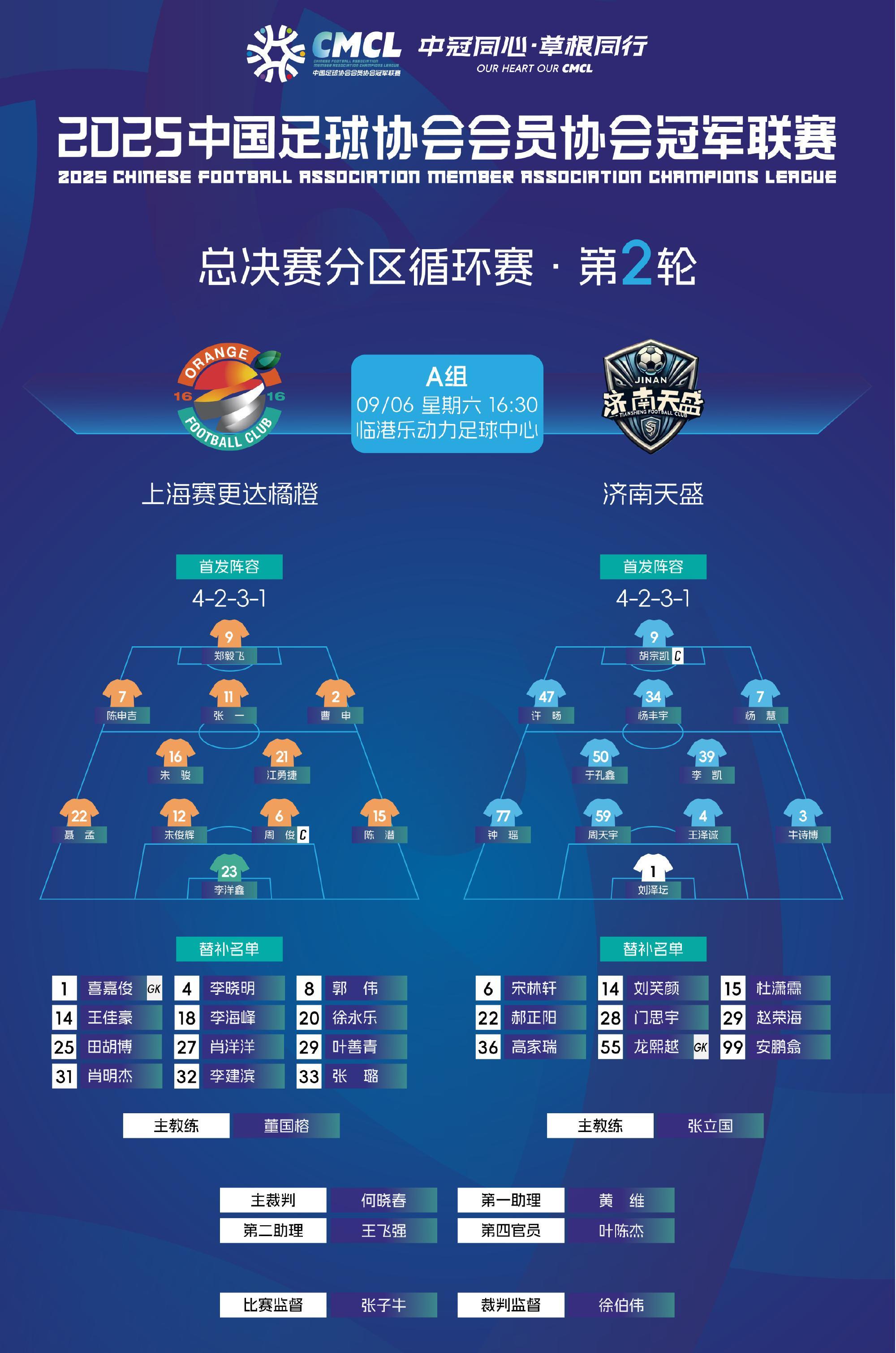 此役,上海赛更达橘橙主教练董国榕安排周俊担任场上队长,李洋鑫司职门将。张一、郑毅飞、朱骏等球员同时出战。其中,59岁的朱骏是这支球队的老板,也是上海申花的前投资人。此役,他身披16号球衣首发登场,出现在后腰位置。这也是他在总决赛阶段的首秀。
